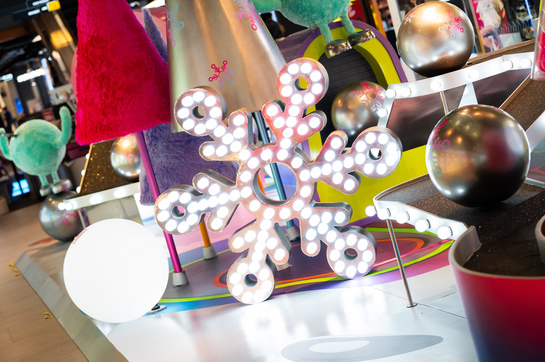 เริ่มด้วยการตกแต่งบรรยากาศเฟสทีฟ เนรมิตทั่วพื้นที่ให้เต็มไปด้วยบรรยากาศแห่งความสุขท่ามกลางสีสันที่เปล่งประกายสะท้อนแสงแห่งความมหัศจรรย์ที่อยู่ในมิติต่างๆ โดยนำรูปทรงของสโนว์เฟล็กมาเป็นสัญลักษณ์การก้าวเข้าสู่เทศกาลแห่งความสุข ตั้งแต่วันนี้ ไปจนถึง7 ม.ค. 2568