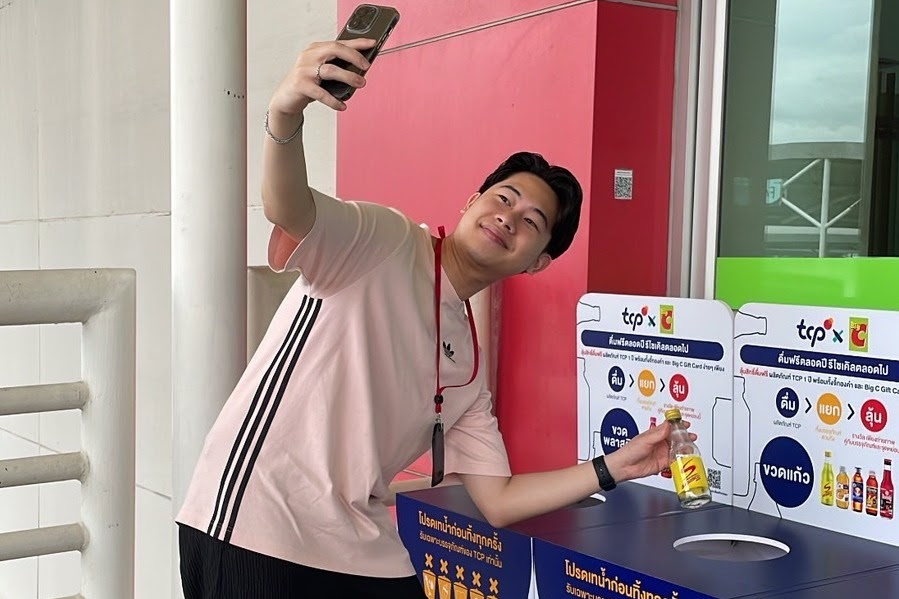 ส่งท้ายด้วยการจับมือกับพันธมิตรอย่างบิ๊กซีและแก้วกรุงไทย เพื่อขยายการมีส่วนร่วมไปสู่ผู้บริโภคมากยิ่งขึ้น ผ่านกิจกรรม “ดื่มฟรีตลอดปี รีไซเคิลตลอดไป” โดยเชิญชวนผู้บริโภคมาร่วม “ดื่ม-แยก-ลุ้น” ดื่มเครื่องดื่มในกลุ่มธุรกิจ TCP แล้วนำมาแยกทิ้งที่จุดรับบรรจุภัณฑ์ดื่มแล้วในบิ๊กซี พร้อมถ่ายภาพหรือคลิปวิดีโอมาโพสต์บนเฟซบุ๊กของกลุ่มธุรกิจ TCP เพื่อลุ้นรับรางวัล ถือเป็นหนึ่งในกลยุทธ์การตอกย้ำว่า แบรนด์เครื่องดื่มของกลุ่มธุรกิจ TCP ใช้บรรจุภัณฑ์ที่รีไซเคิลได้ 100% ทั้งขวดพลาสติก ขวดแก้ว รวมถึงกระป๋องอะลูมิเนียม โดยมีกลุ่มบริษัทแก้วกรุงไทย ช่วยเก็บกลับบรรจุภัณฑ์เข้าสู่ระบบรีไซเคิล เป็นจำนวนรวมกว่า 675.9 กก. หรือ 15,507 ชิ้น ลดการนำขยะไปฝังกลบและช่วยลดการปล่อยก๊าซเรือนกระจก นอกจากนี้ ยังเป็นการสร้างพฤติกรรมผู้บริโภคให้เกิดการเปลี่ยนแปลงด้วยการลงมือทำ เพราะการดูแลสิ่งแวดล้อมเป็นเรื่องที่ทุกคนทำได้ไม่ยาก เพียงแยกขยะเพื่อนำไปรีไซเคิล ซึ่งแม้ว่ากิจกรรมจะเสร็จสิ้นแล้ว ก็ยังคงทำต่อได้ในชีวิตประจำวันของทุกคน