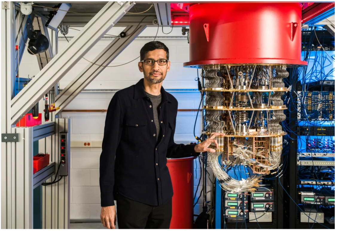 ภาพของ Sundar Pichai ซีอีโอของ Google ถ่ายภาพร่วมกับ Quantum ของ Google