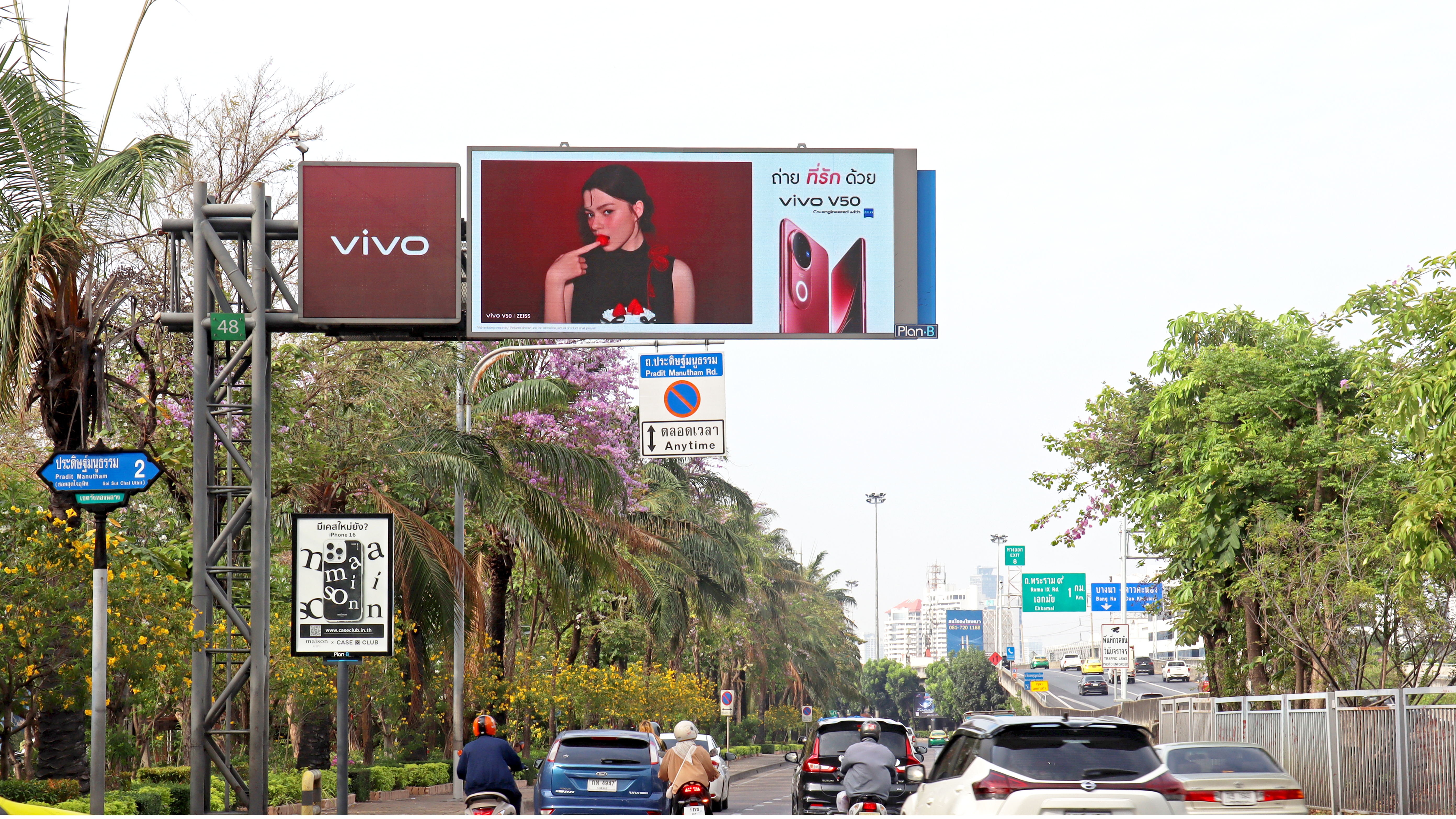 vivo หยิบจุดเด่นเรื่องดีไซน์สีใหม่สุดพรีเมียมของ V50 มาเป็นหนึ่งในแกนหลักสื่อสารสร้างภาพจำกับผู้บริโภค โดยเลือกใช้ Ads OOH ในรูปแบบ Billboard และ LED ทั่วกรุงเทพฯ เนรมิตทั้งเมืองให้เป็นสีแดง “Ancora Red” เพื่อสร้าง Brand Awareness และการจดจำ ตอกย้ำเอกลักษณ์ของเฉดสีไฮไลท์ รวมถึงจุดกระแสนำเทรนด์สีแดง Ancora Red ให้กลับมาสู่วงการสมาร์ตโฟนอีกครั้ง หลังห่างหายจากตลาดไปนาน