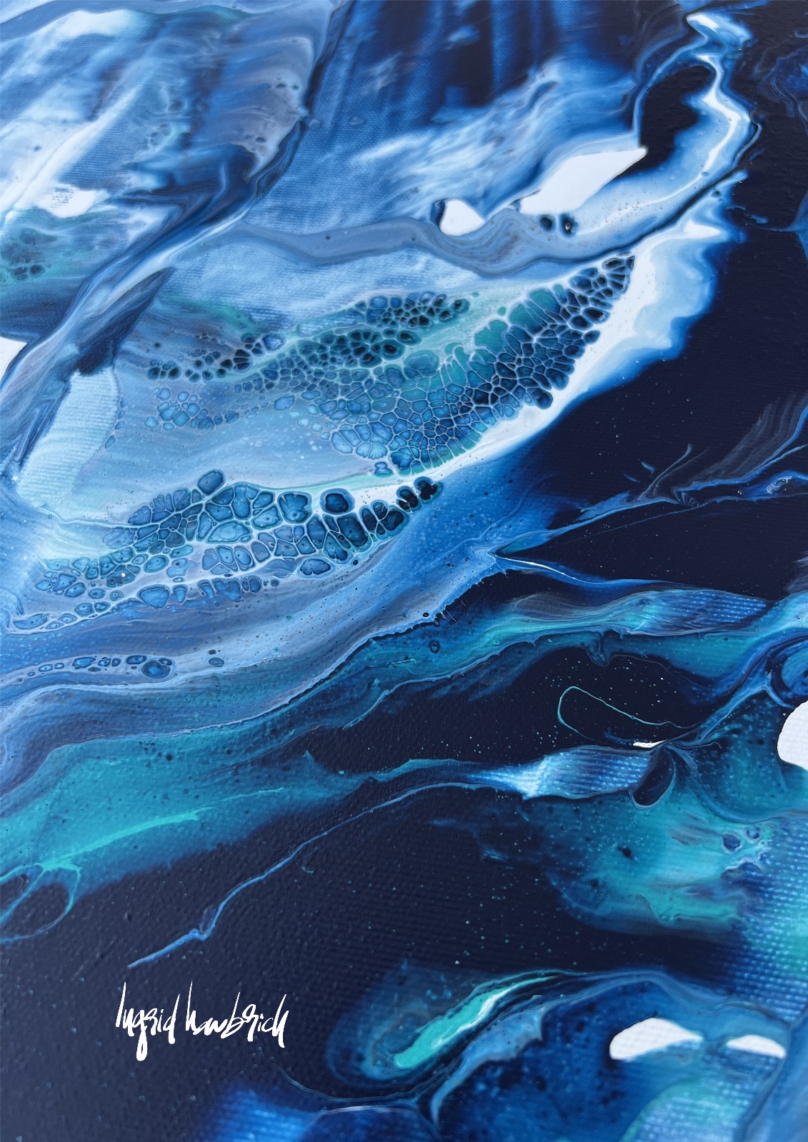 ผลงานชุด “กระแสน้ำ” แสดงให้เห็นถึงความลื่นไหลของสายน้ำ และยังแสดงถึงความไม่จีรังและพลังแห่งการปรับเปลี่ยนภูมิทัศน์ อินกริดได้ใช้เลเยอร์ของความโปร่งใสและพื้นผิวที่มีการเคลื่อนไหวเพื่อรังสรรค์กระแสน้ำขึ้นลงของมหาสมุทร ซึ่งเป็นพลังที่ลบล้างและวาดแนวชายฝั่งขึ้นมาใหม่ตามวัฏจักรแห่งการเริ่มใหม่ชั่วนิรันดร์
