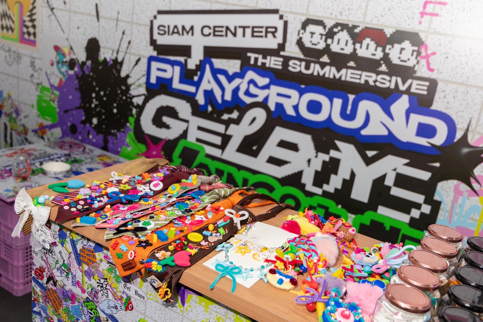 ในครั้งนี้ สยามเซ็นเตอร์ ร่วมกับ LOOKE ผู้ผลิตซีรีย์ส GELBOYS สถานะกั๊กใจ เปิดสนามเด็ก(สยาม)เล่น “Siam Center The Summersive Playground: GELBOYS Joinground” จำลองจักรวาลซี่รี่ย์ GELBOYS สถานะกั๊กใจ มาให้ทุกคนได้อินกันจริงๆ แบบไม่ต้องกั๊ก โดยงานนี้ ยกมาทั้งฉากสุดประทับใจ ไม่ว่าจะเป็น ร้านเล็บเจลชื่อดังจากซีรีย์ ร้านรถเข็นผลไม้ ที่รวมผลไม้ยอดฮิตที่คุ้นเคยในวัยเรียน มาในชื่อเมนูที่เข้ากับคาแรกเตอร์นักแสดงทั้งสี่ ไม่ว่าจะเป็น ผู้ชายแตงโม, ไพลินชอบกินสัปปะรด, พาพาย่าบ้าบิ่น และ ฝรั่งตาฟ้า ยังมีไอศครีมกะทิพร้อมท้อปปิ้งแบบไทยๆ หรือจะเป็น น้ำหวานหลากรสในชื่อสุดครีเอตจากคาแรกเตอร์ตัวละคร น้ำชาดำเย็น แทนความนิ่งและเท่แบบ ‘เชียร’, น้ำแดงมะนาวโซดา สดใสซาบซ่าตามแบบฉบับของ ‘โฟร์มด’, น้ำมะพร้าว ชวนให้นึกถึง ‘บ้าบิ่น’ และ น้ำบลูฮาวาย สดชื่นแบบอินเตอร์ไปกับ ‘บัว’ และภายในงานยังมีอีกหลายโมเม้นท์จากซีรีย์สที่เอามาเสิร์ฟ ที่ล้วนแต่แสดงถึงความเป็นไทย สะท้อนออกมาในแบบฉบับของคนรุ่นใหม่ ตั้งแต่วันนี้-20 เมษายน 2568 ชั้น G สยามเซ็นเตอร์
