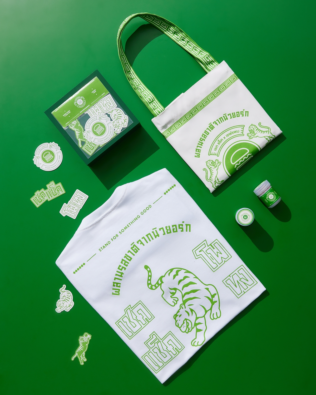 เท่านั้นยังไม่พอ! เพื่อเป็นการเฉลิมฉลองการร่วมมือสุดพิเศษในครั้งนี้ Shake Shack ประเทศไทยขอมอบของที่ระลึกสุดเอ็กซ์คลูซีฟที่มาพร้อมความเก๋สไตล์ Shake Shack X POTONG ในวันแรกของการเปิดตัว ลูกค้า 25 ท่านแรกของแต่ละสาขา หากสั่งเมนูพิเศษครบทั้ง 4 เมนู จะได้รับเซ็ตของพรีเมียมลิมิเต็ดเอดิชั่นครบชุด ไม่ว่าจะเป็นกระเป๋าผ้าสุดชิค เสื้อยืดดีไซน์เก๋ สติกเกอร์สุดจี๊ด และยาดม POTONG X Shake Shack ที่โดยปกติแจกเป็นของที่ระลึกที่ POTONG เท่านั้น! นอกจากนี้ลูกค้าทุกท่านที่ซื้อเมนูใดก็ได้ในเมนูพิเศษเหล่านี้จะได้รับยาดมฟรีทันที (จนกว่าของที่ระลึกจะหมด)