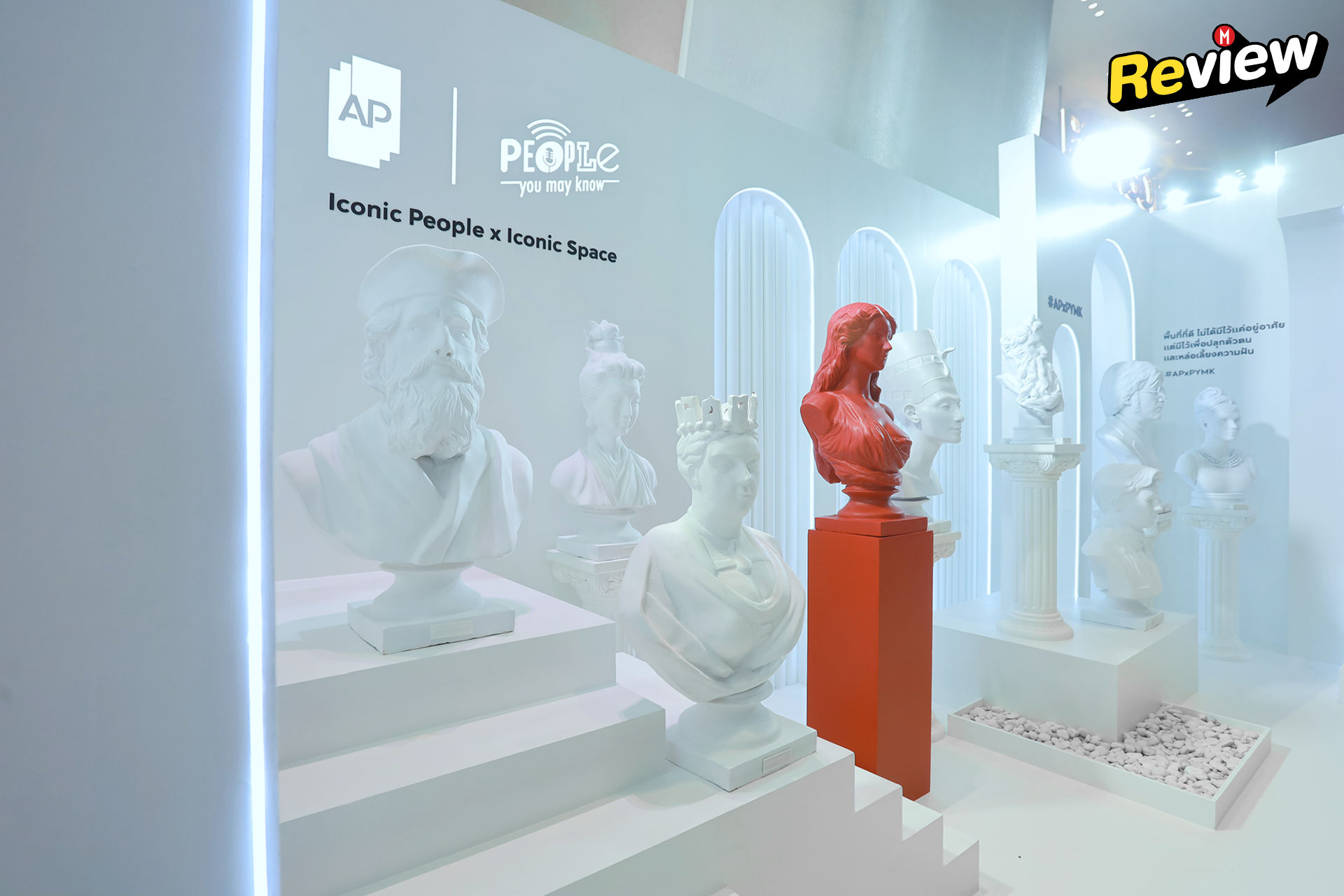 ถ้าให้พูดถึงหนึ่งในบูธที่ “ประทับใจ” และได้ “แรงบันดาลใจชัด” ที่สุดในงานครั้งนี้คือบูธจาก AP Thailand ที่มาในคอนเซปต์ ‘ICONIC PEOPLE X ICONIC SPACE’ นิทรรศการที่ว่าด้วยการบรรจบกันระหว่างแรงบันดาลใจ กับพื้นที่ที่เราใช้ชีวิตอยู่จริง