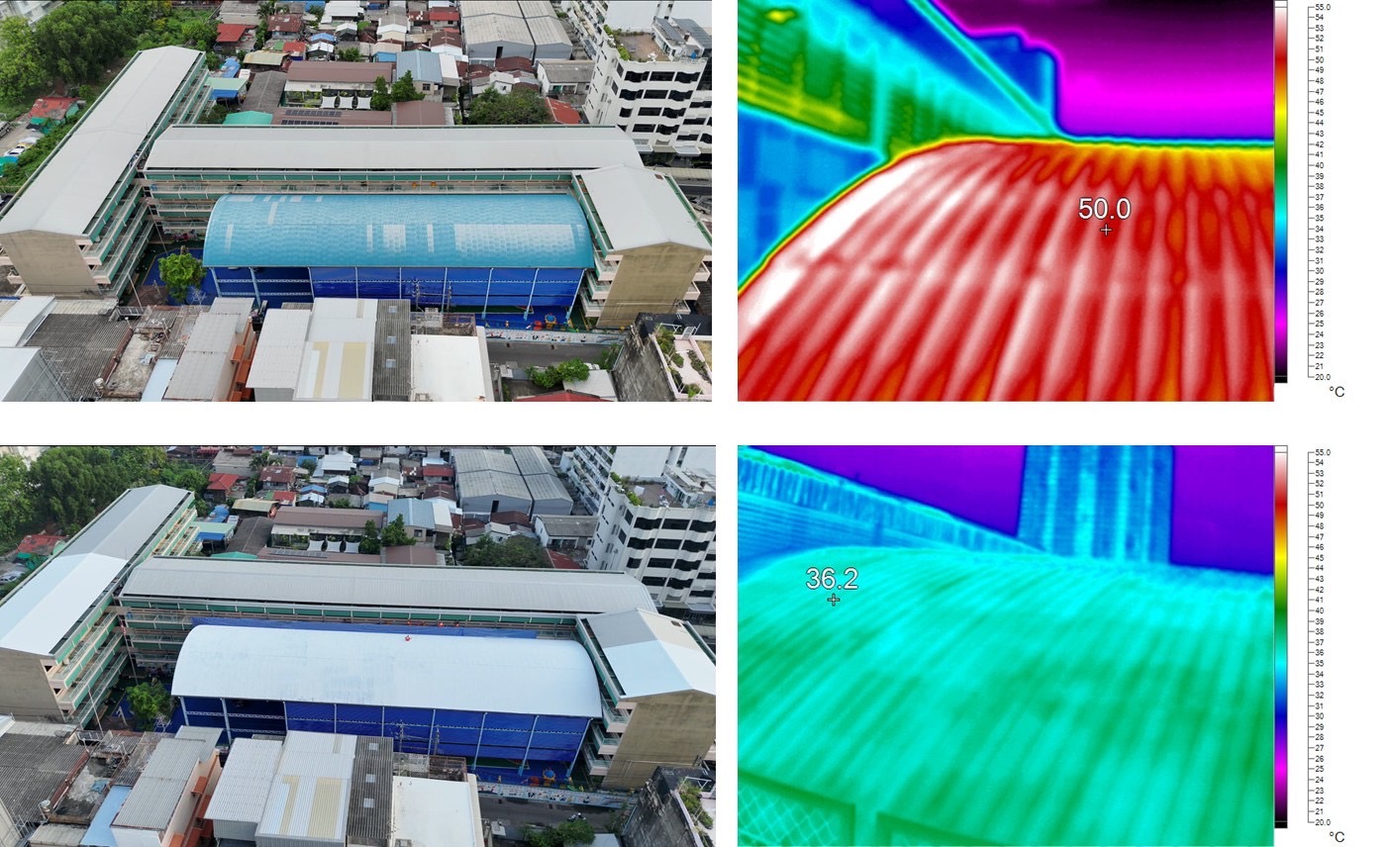 - ลดอุณหภูมิพื้นผิวหลังคาได้สูงสุด 8°C