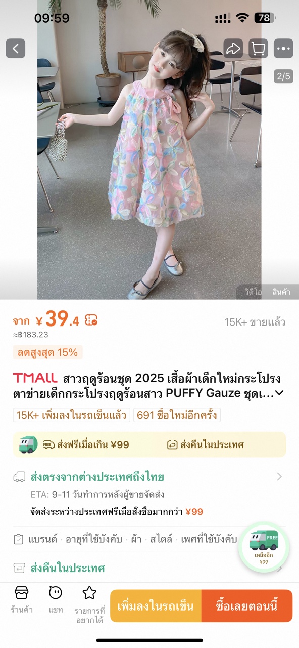- บริการส่งฟรี: เพลิดเพลินกับการช้อปแบบไม่ต้องเสียค่าจัดส่งสำหรับสินค้ามากกว่า 10 ล้านรายการ เมื่อมียอดสั่งซื้อขั้นต่ำเพียง 99 หยวน (ประมาณ 450 บาท)