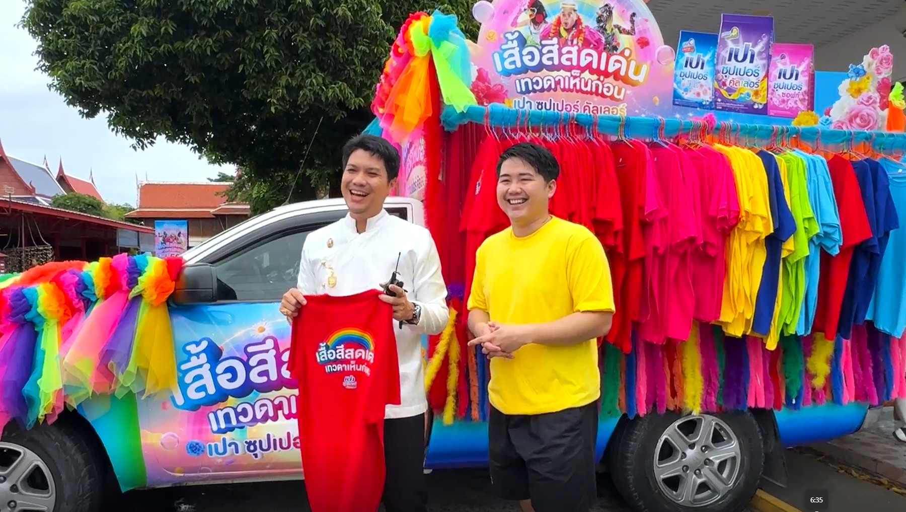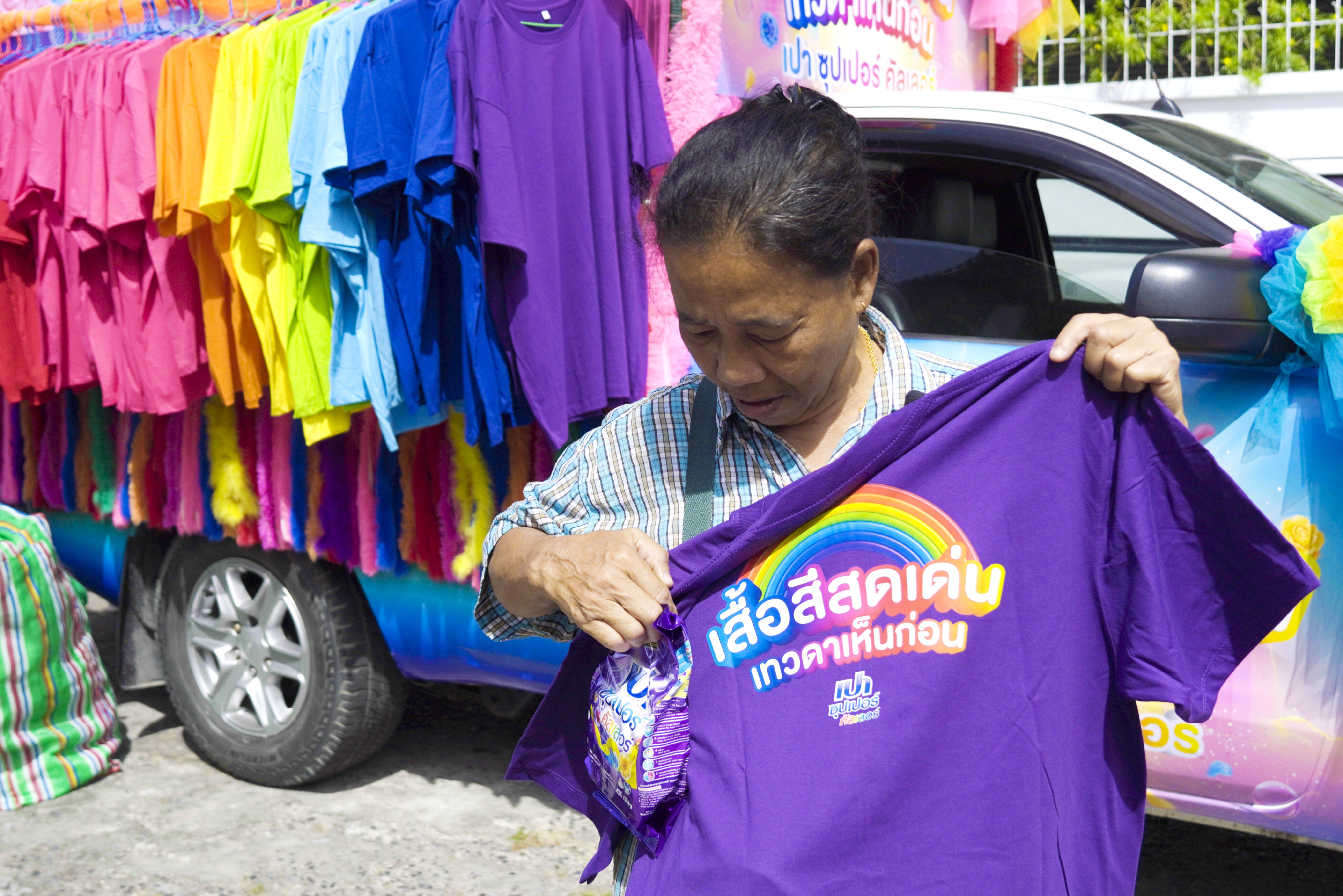 โดย รถพุ่มพวง เปา ซุปเปอร์ คัลเลอร์ ทำถึงและทำจริง เพราะขนเสื้อดีไซน์พิเศษ รุ่น “สีสดเด่นเทวดาเห็นก่อน” ไปให้สายมูใส่ขอพรกันถึงที่ มูให้เด่น มูให้ปัง มูให้สมหวังกันถ้วนหน้า ในราคาเพียงตัวละ 59 บาท รายได้ทั้งหมดส่งมอบให้กับวัด แบบไม่หักค่าใช้จ่าย ได้ร่วมสร้างบุญ แล้วยังสร้างสีสันเสริมบรรยากาศการขอพรให้ยิ่งคึกคัก ใส่สีสดโดดเด่นขอพรก่อนใคร พร้อมรับผลิตภัณฑ์ เปา ซุปเปอร์ คัลเลอร์ กลับไปดูแลผ้าสีที่บ้านกันต่อ ได้เลย ฟรีๆ เพราะซักกี่ทีสีไม่ซีดจาง