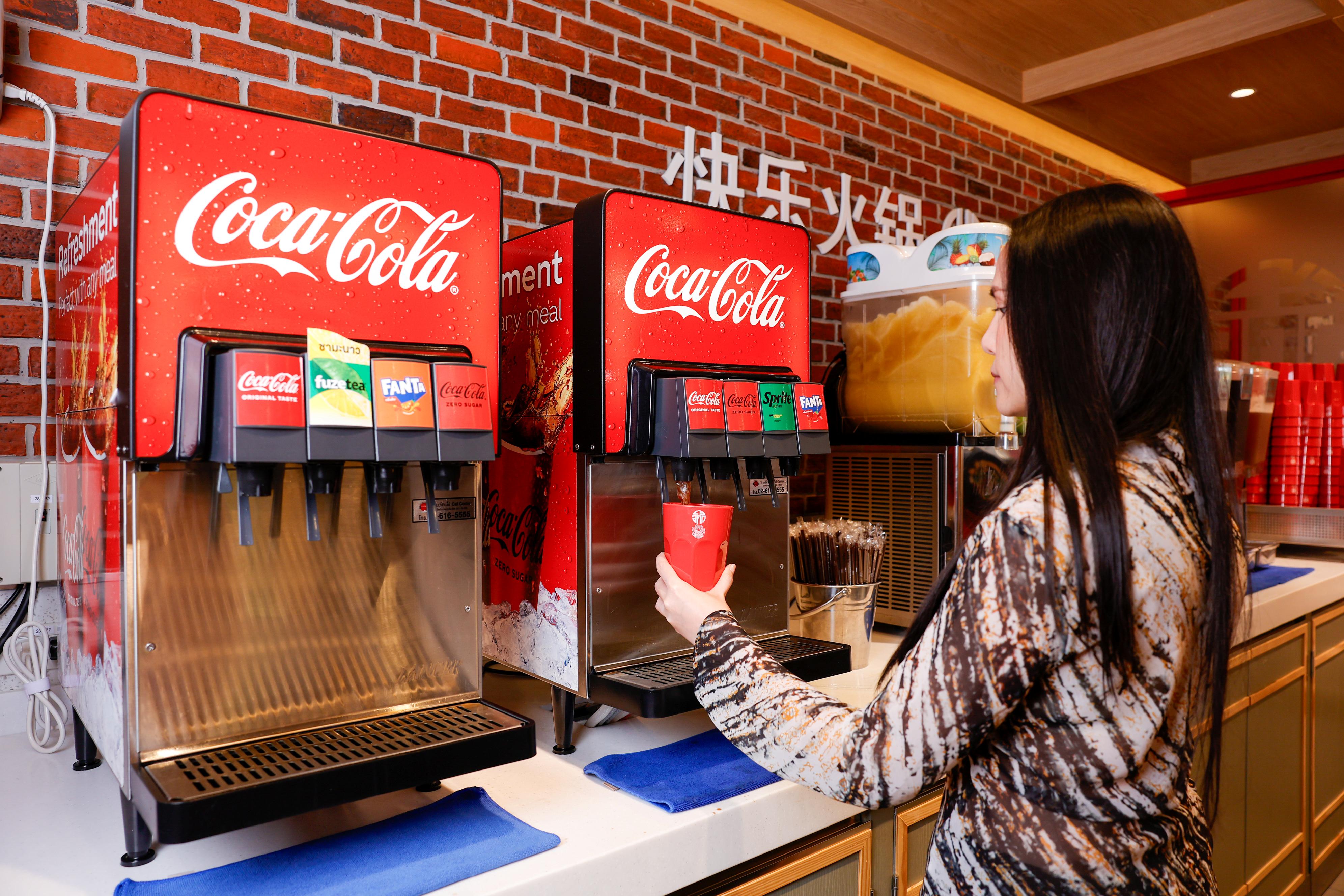 พร้อมเสิร์ฟความสดชื่นของเครื่องดื่มจาก “โคคา-โคล่า” แบบรีฟิล ในราคา 39 บาท ในทุกสาขาปัจจุบันและสาขาใหม่ในอนาคต โดยมี “โค้ก” รสชาติออริจินัล “โค้ก” ไม่มีน้ำตาล “สไปรท์” ไม่มีน้ำตาล “แฟนต้า” กลิ่นส้ม “แฟนต้า” กลิ่นสตรอเบอร์รี และ “ฟิวซ์ ที”