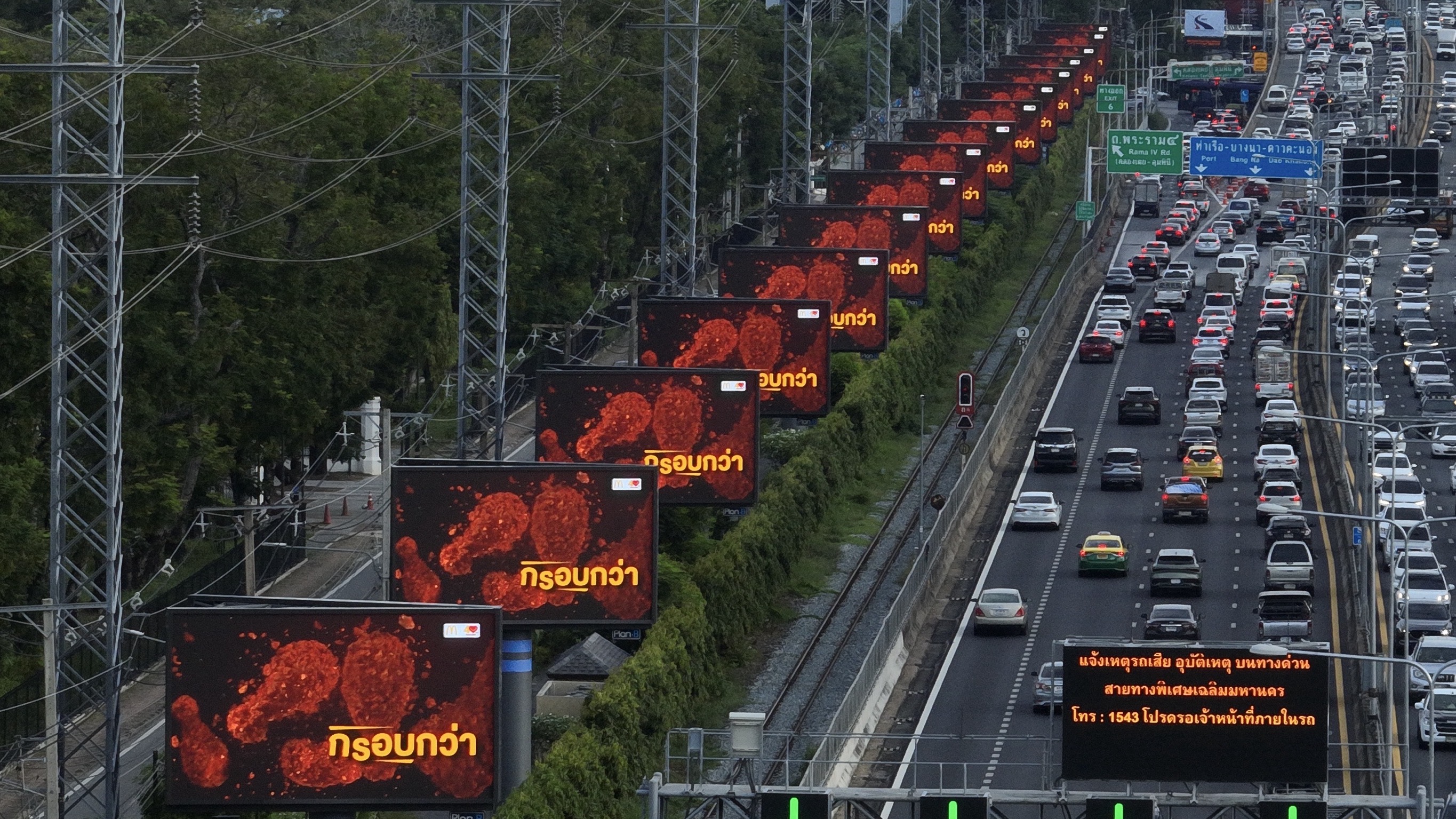จากอินไซต์คนเมืองใหญ่ที่ต้องเผชิญปัญหารถติดในชีวิตประจำวันและอยู่บนท้องถนนเฉลี่ยหลายชั่วโมงต่อวัน แมคโดนัลด์ เลือกหยิบข้อมูลนี้มาต่อยอดเดินเกมรุกทางการตลาดครั้งใหญ่ ดึงดูดผู้บริโภคในจังหวะที่ใช่ (รถติดแล้วมักรู้สึกหิว) ด้วยโฆษณาบนจอซีรีส์ยาวเรียงกันกว่า 74 จอ บริเวณทางด่วนพระราม 4 ท้าให้ลอง 2 เมนูใหม่! ‘วิงส์แมคซี้ดซ้าด’ และ ‘ไก่ทอดแมคซี้ดซ้าด’ ที่อร่อย ซี้ดซ้าด กว่าไก่ทอดที่เคยกินมา ทั้งกรอบกว่า ชุ่มฉ่ำกว่า ซี้ดกว่า เรียกว่าเห็นแล้วหิวจนต้องกดสั่งแมคโดนัลด์ หรือรีบแวะที่ร้านกันเลยทีเดียว