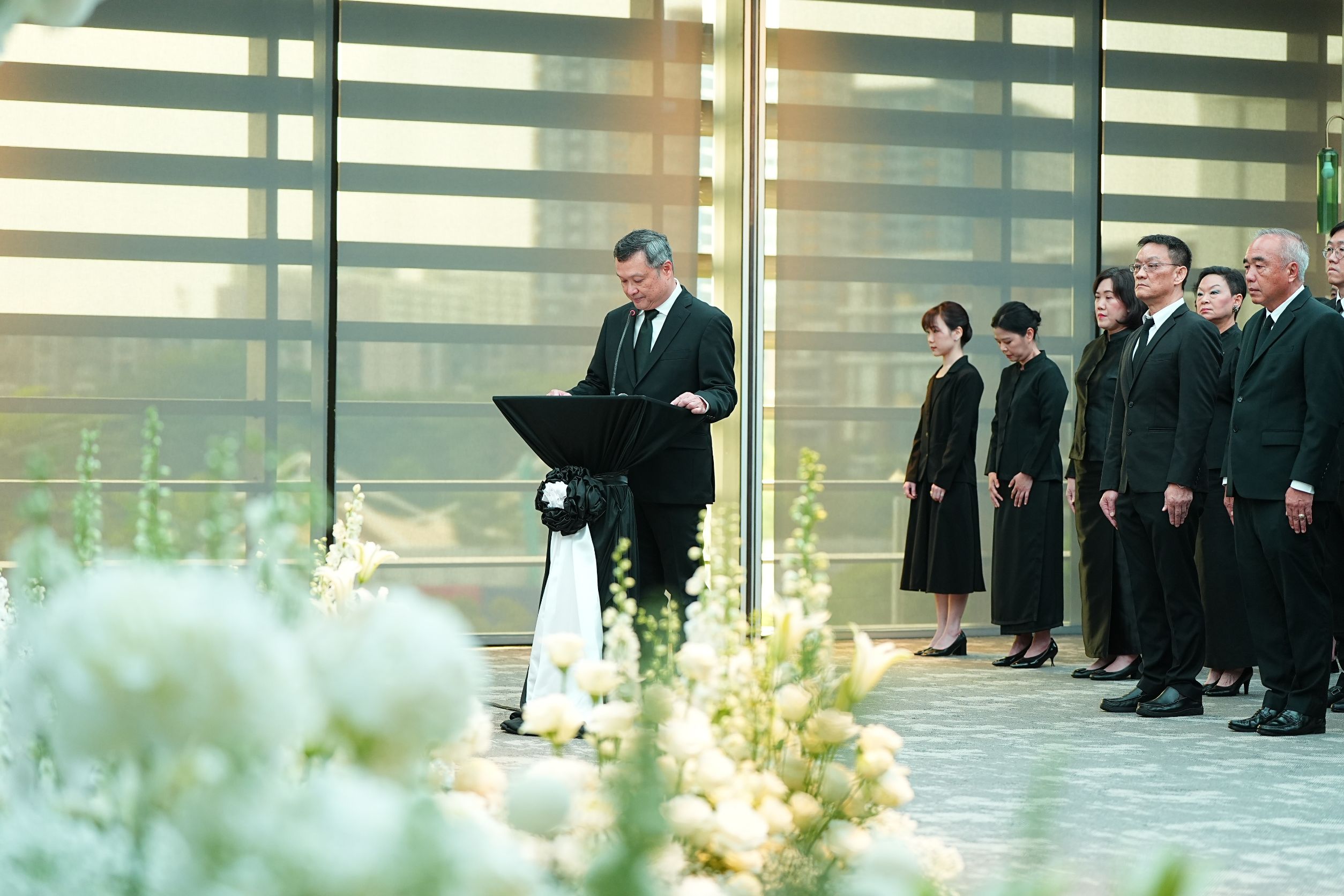 ในโอกาสนี้ นายอุทัย อุทัยแสงสุข กรรมการผู้จัดการใหญ่ ตัวแทนบริษัท กล่าวคำน้อมถวายความอาลัยและนำผู้เข้าร่วมพิธียืนสงบจิตน้อมศิระกราน พร้อมลงนามในสมุดถวายความอาลัย เบื้องหน้าพระฉายาลักษณ์ ณ ห้องประชุมสำนักงานใหญ่ อาคารสิริแคมปัส
