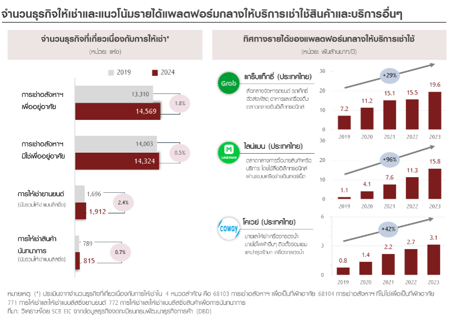 ผู้บริโภคยุคใหม่เริ่มหันมา “เช่าใช้” กันมากขึ้น แนวโน้มนี้ได้ขยายจากการเช่าที่อยู่อาศัยหรือรถยนต์ไปสู่สินค้ากึ่งคงทนหลากหลายประเภท ขณะที่บริการ Ride-sharing ก็ได้รับความนิยมเพิ่มขึ้นอย่างต่อเนื่อง