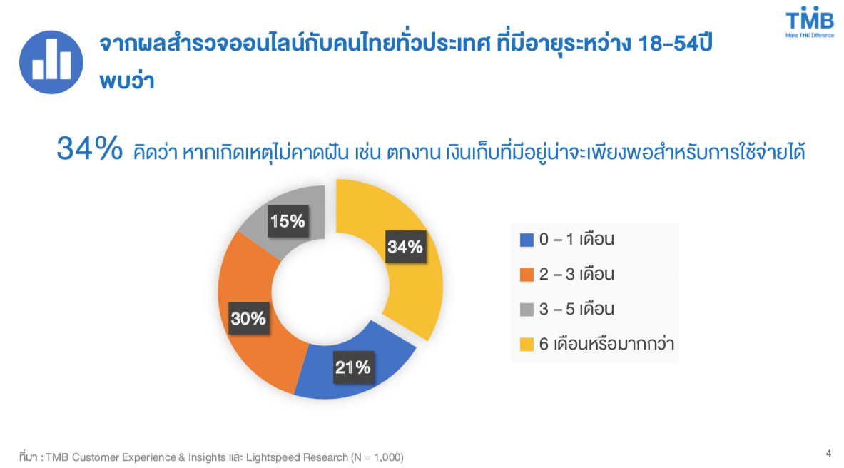 พร้อมกันได้เปิดผลวิจัยแรกในหัวข้อ “คนไทยมีเงินเหลือใช้ไม่ถึง 6 เดือนเมื่อหยุดทำงาน” พบว่า