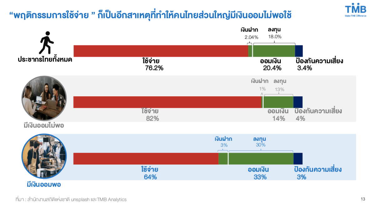 – สาเหตุหลักของปัญหาไม่มีเงินออม คือ “พฤติกรรมการใช้จ่ายเงิน” ของคนไทย