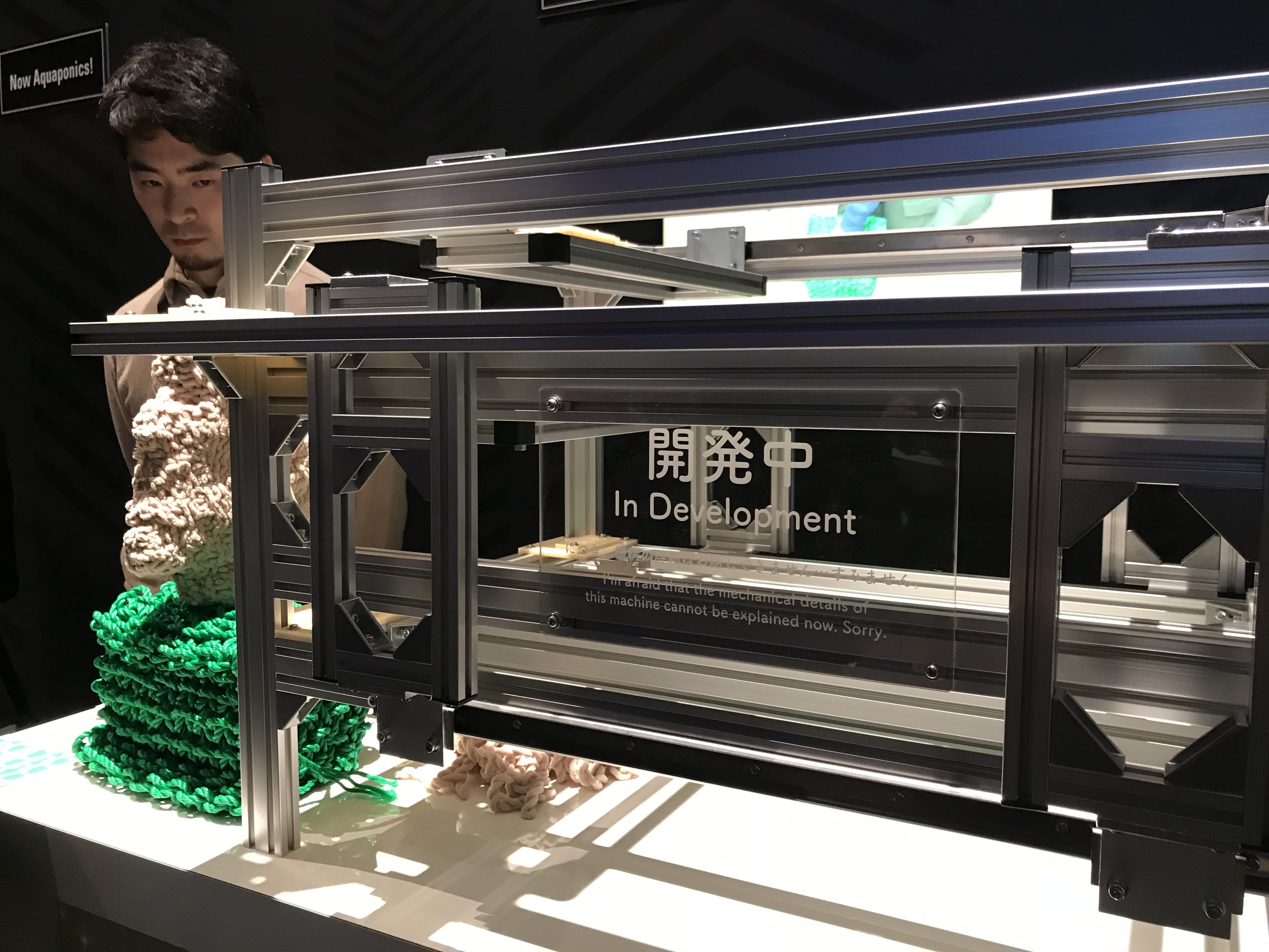3D Printer ที่ช่วยถักนิตติ้งในงานที่ยากๆ ให้ออกมาในรูปแบบ 3 มิติ โดยเครื่องนี้นอกจากไหมพรมยังสามารถใช้เชือกไนลอนขนาดใหญ่เป็นไหมถัก เชือกไนลอนขนาดเล็กมากๆ เพื่อให้ได้งานขนาดเล็กได้ด้วย