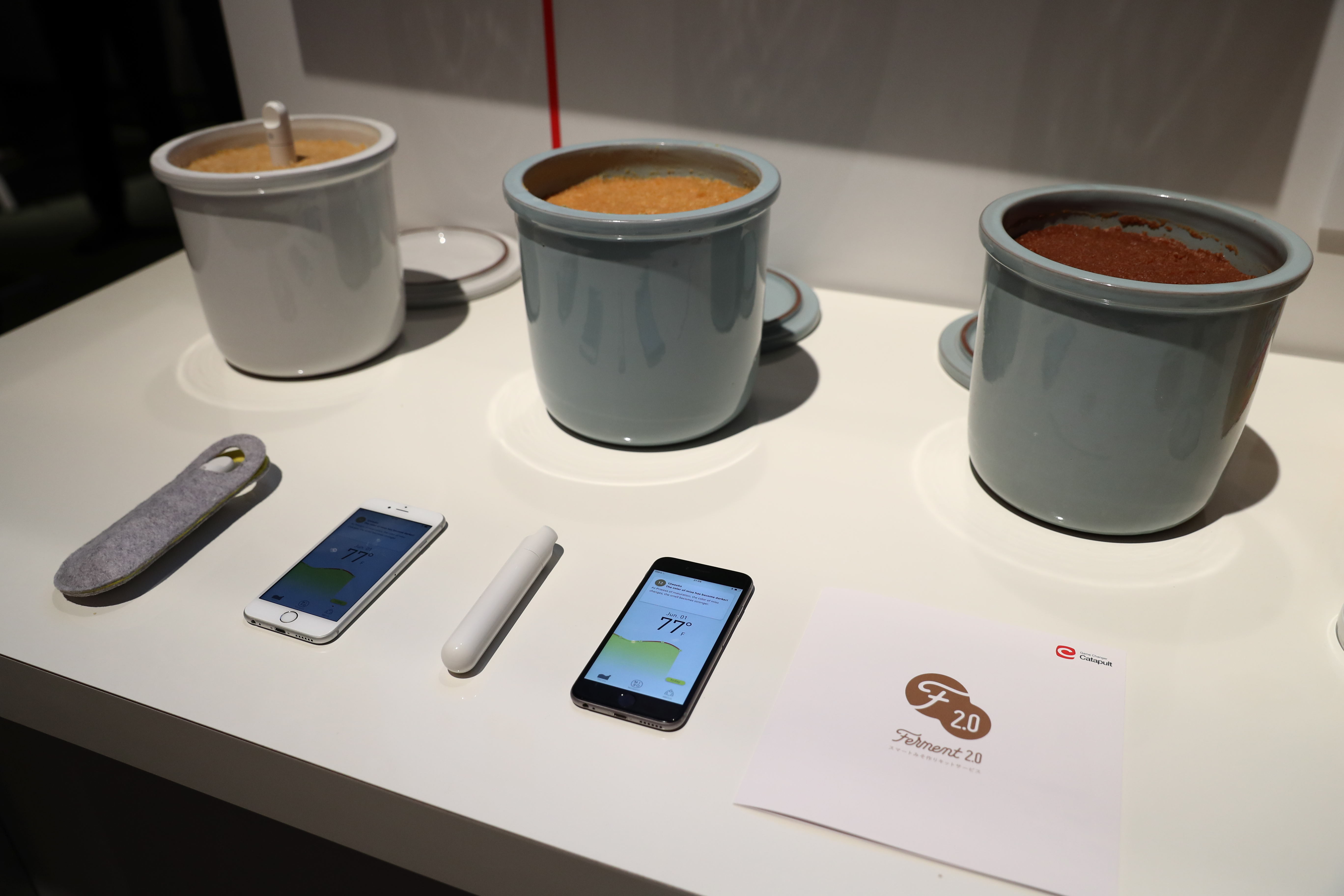 เครื่องวัดเวลามิโสะ ปกติแล้วมิโสะจะต้องใช้เวลาหมัก 3 เดือน เครื่องนี้จะเป็นแท่งยาวๆ ปักไว้ที่มิโสะ เมื่อมิโสะถึงเวลาหมักได้ที่ เครื่องจะเตือนไปที่สมาร์ทโฟนเพื่อบอกว่ามิโสะได้ที่แล้วนะ