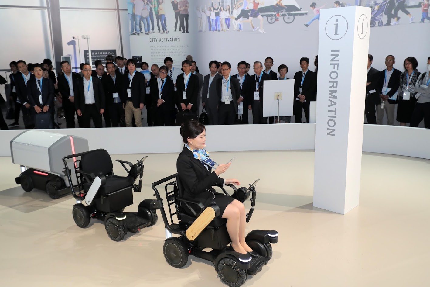 ซึ่งในงานเป็นการจำลองการใช้ Whill Next ในแอร์พอร์ต ที่ให้บริการผู้โดยสารสูงวัย และผู้โดยสารทั่วไปที่มีสัมภาระขนาดใหญ่ บรรจุในที่ใส่ของด้านหลังที่แยกออกจากเก้าอี้ จากนั้นก็นั่งสวยๆ บนเก้าอี้เพื่อสั่งการให้พาไปที่ไหนก็ได้ตามที่โปรแกรมเอาไว้ และเมื่อส่งผู้โดยสารเสร็จ สามารถสั่งให้รถไปประจำการที่สถานีรับผู้โดยสารผ่านแอปได้เลย